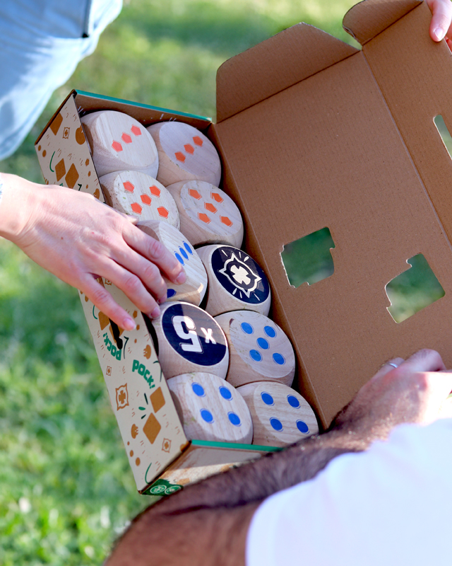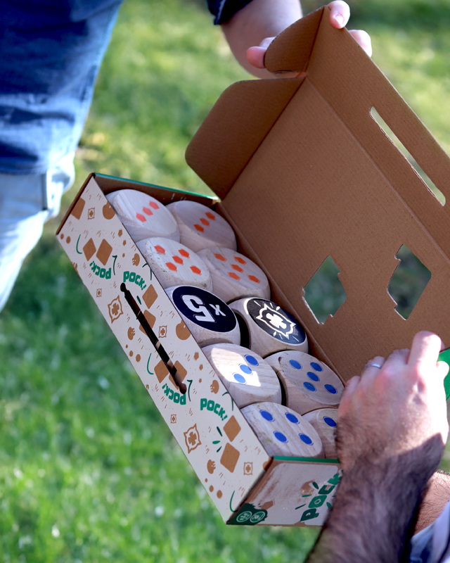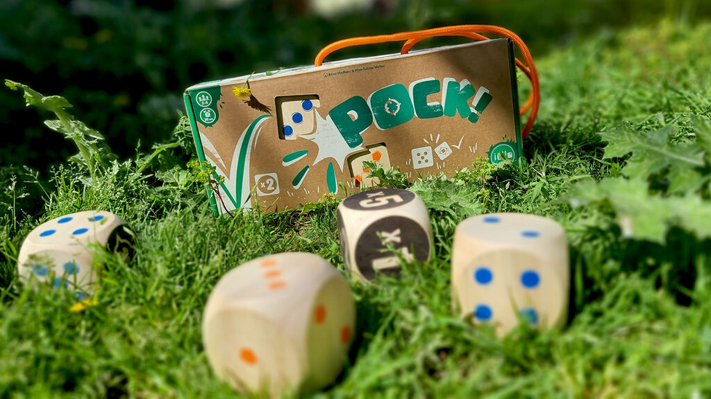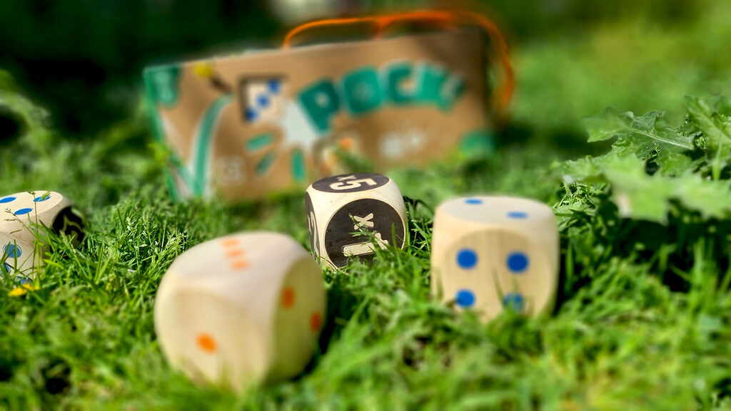 However, be careful, if your dice touches a Maro that is currently on the “x3 Skull” side, that dice is immediately removed from play (until next round). Fortunately, there is another way to score: POCK! Hit a POCK face on a die to immediately win 5 points!