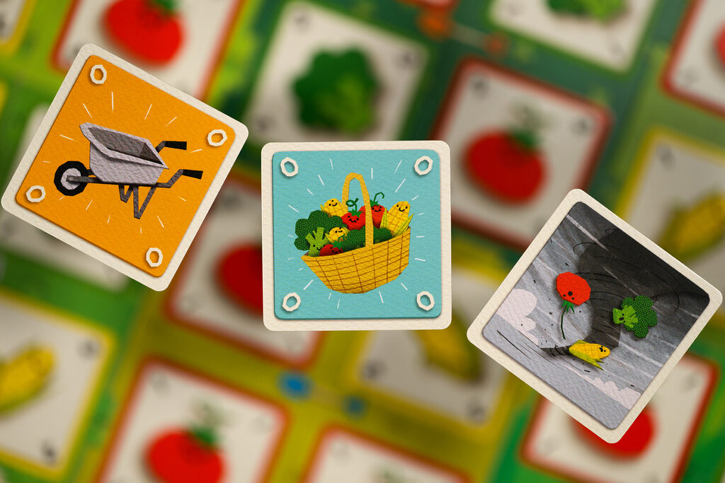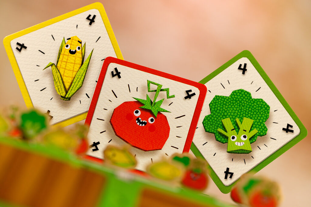 In Veggie Match plant your veggies, harvest the best ones, and leave the rotten ones for your opponents. Good timing, underhanded deals, and surprises make Veggie Match a family, quick, and hilariously mean game!